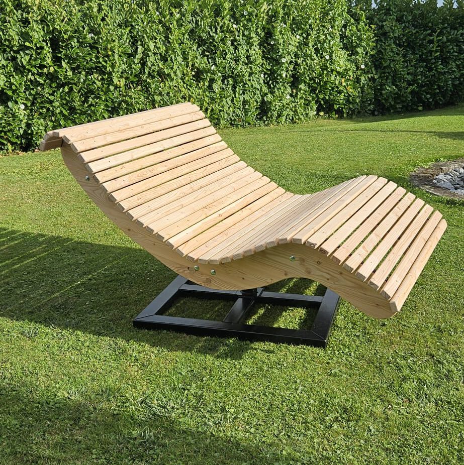 Unsere 360° Wellenliege – eine Premium-Gartenliege mit innovativem, endlos drehbarem Gestell. Die ergonomische Formgebung wurde speziell für optimalen Liegekomfort entwickelt und unterstützt die natürliche Wirbelsäulenkrümmung. Höhenverstellbare Füße ermöglichen Anpassung an unterschiedliche Untergrundverhältnisse.