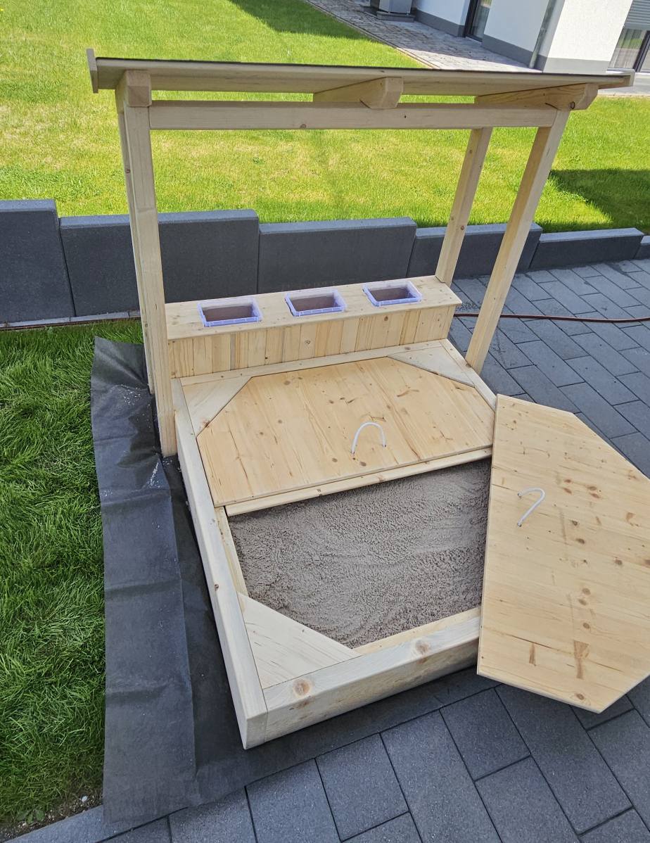 Passend zum Sommer: Unser liebevoll gestalteter Sandkasten mit integrierter Matschküche lädt kleine Entdecker zum Buddeln, Matschen und Spielen ein!